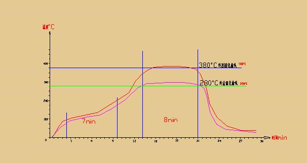 為了有很好的溫度曲線,一般需要二個(gè)加熱區(qū),一個(gè)為預(yù)熱揮發(fā)區(qū)和高溫固化燒結(jié)區(qū),另一個(gè)為冷卻區(qū)。