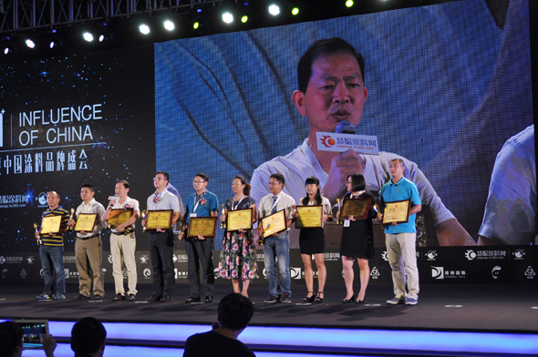 第九屆中國十佳涂料品牌評選頒獎大會,樂福爾涂裝總經(jīng)理徐雄亮上臺領(lǐng)獎